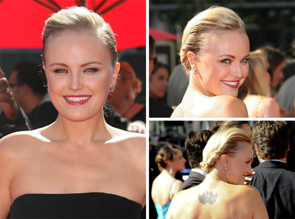 I adore hairstyles with a twist, and Malin Akerman caught my eye with this sleek and chic twist at the Primetime Creative Arts Emmy Awards recently. Isn't her 'do adorable, ladies? Justine Piecuch, stylist at Newburyport's shanti salon, is sharing her tips for getting Malin's look at home!