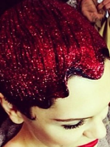 Jessie J rocks red hair glitter at the Jingle Bell Ball