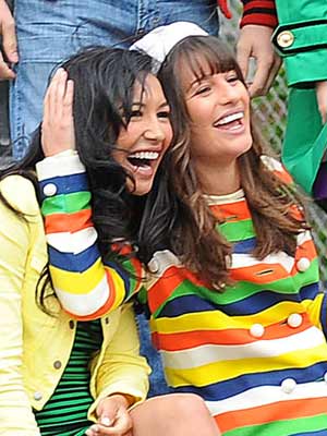 Naya Rivera and Lea Michele shoot a scene togther